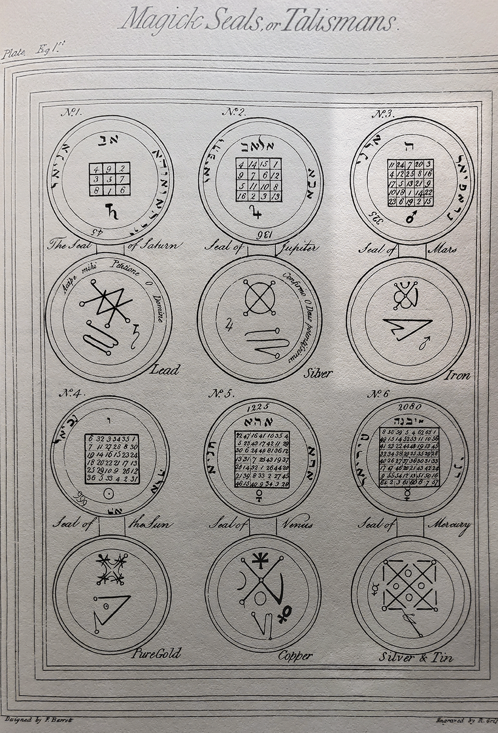 1: Although I own several copies, I have never been a fan of Francis Barrett’s 1801 book The Magus or Celestial Intelligencer because I was aware that it was largely regarded as entirely plagiarised from other grimoires and occult luminaries like Agrippa. So often-as-not I pass right over it… Nevertheless I picked up a copy and leafed it open. A crack in the spine led the book to open on this exact page: