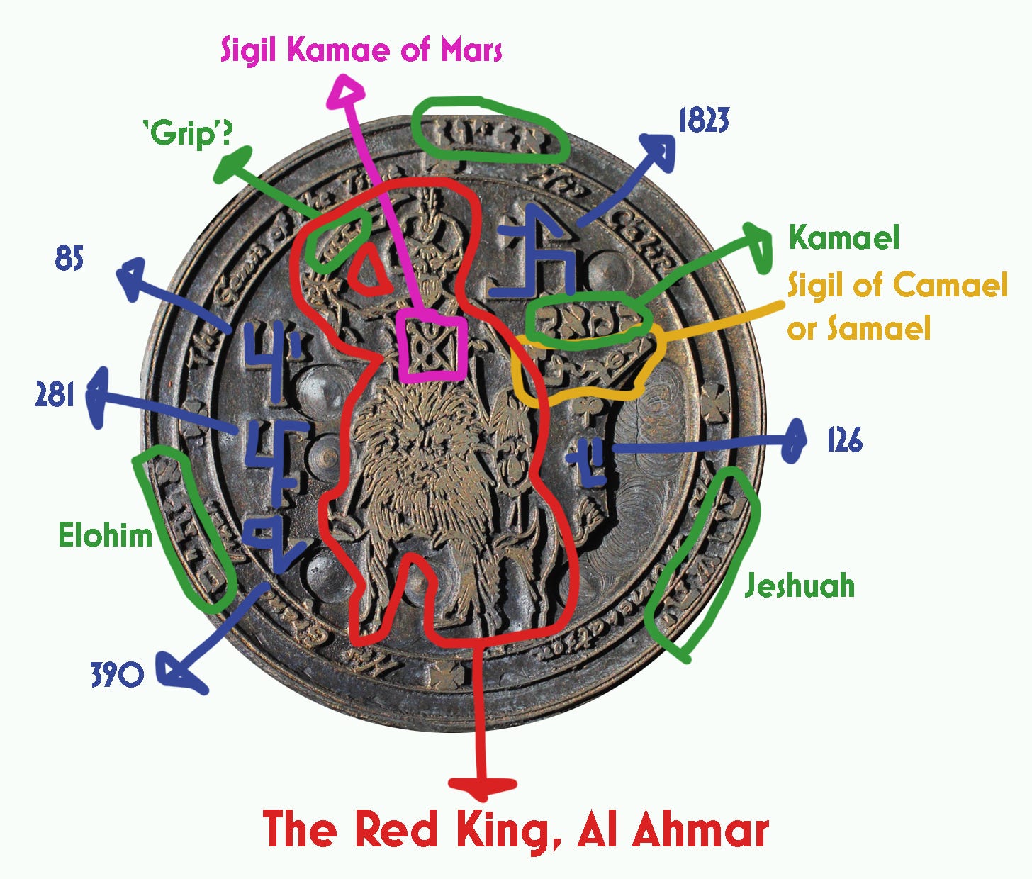 So, it is clear that the printing block I own contains a complex symbol that draws on numerous different traditions, and funnel through the stylings of the grimoires to combine qabalistic symbolism with that of the Islamic planetary jinn magic, to create a device that serves the operant in matters pertaining to martian influence.